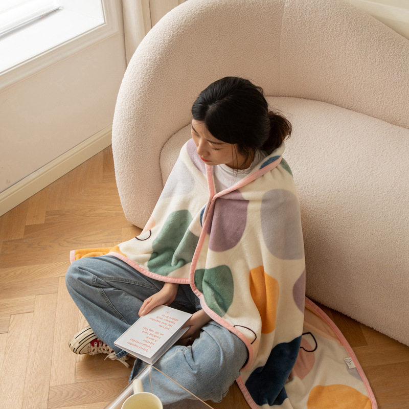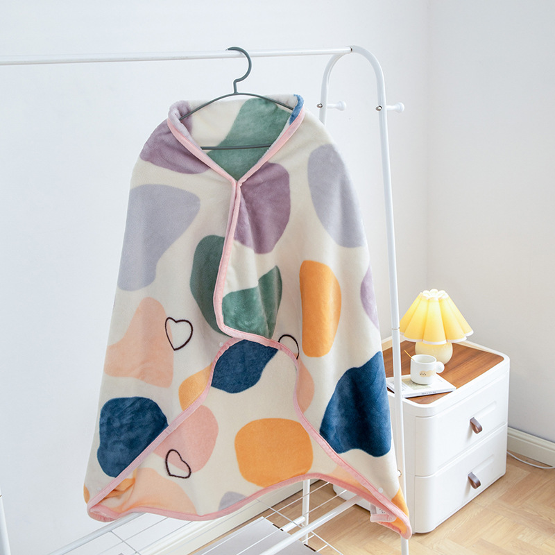 可愛らしい水玉模様とハートの刺繍がアクセントになった、おしゃれなブランケットタイプの着る毛布です。 フード付きで頭から肩までしっかり包み込み、冷える首元を優しく温めます。 ゆったりとしたポンチョ型のデザインで、動きやすく快適な着心地を実現しました。 柔らかな生地が全身を優しく包み込み、リラックスタイムを快適に過ごせます。 お部屋でのくつろぎ時間や、寒い季節の防寒対策に最適なアイテムです。